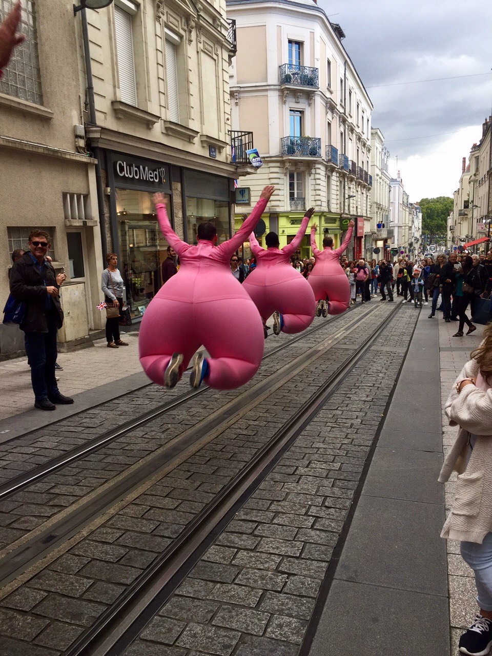 Som en blanding mellom Michelin- og Teletubbyfigurer leker de med det de finner på veien av utendørs møbler og bygg.